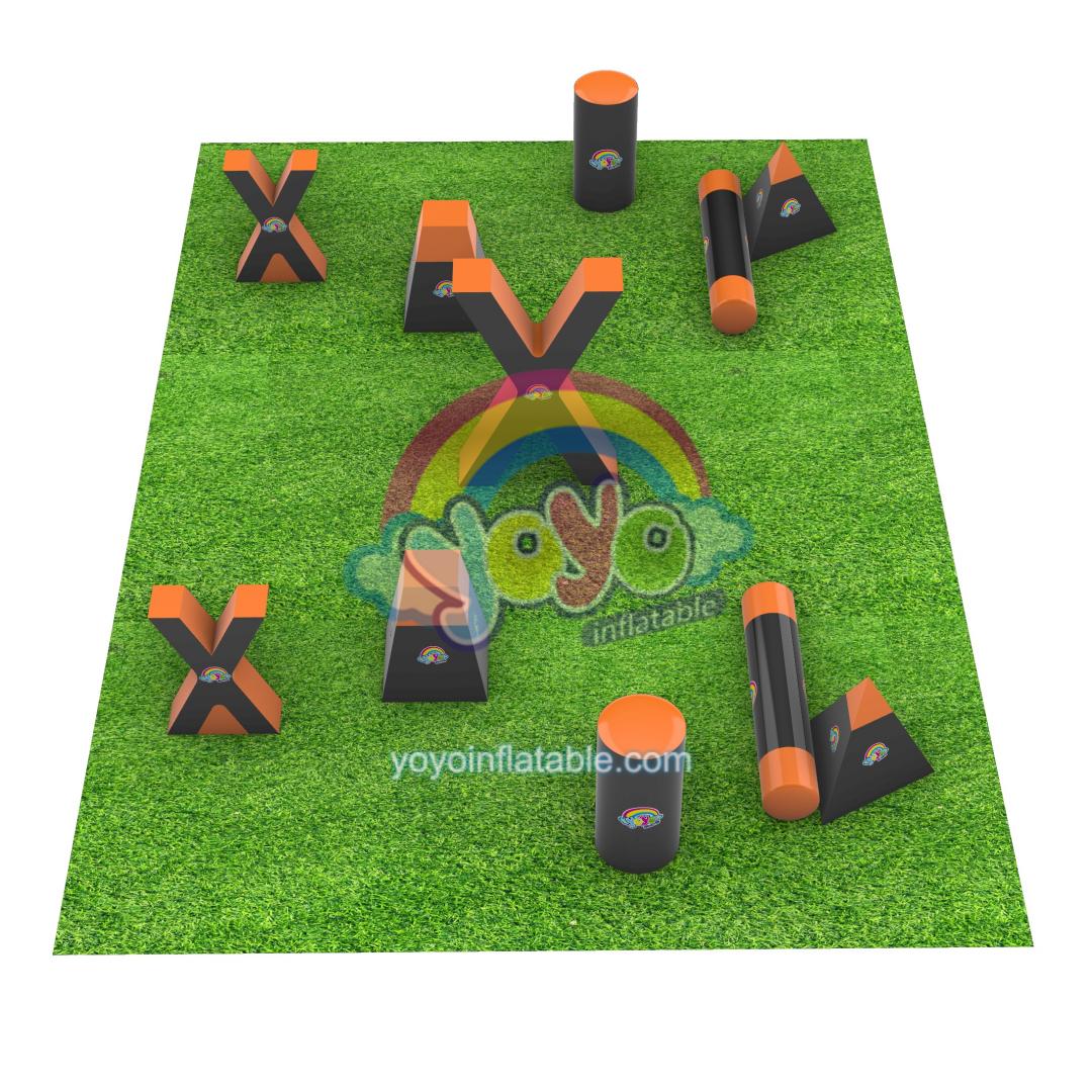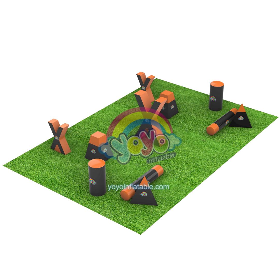 Transform any space into a dynamic combat arena with this set of 11 smart inflatable bunkers, designed for tactical 3-player shooting games. Each piece boasts a distinct geometric form—including X-shapes, trapezoids, triangles and cylinders—creating diverse strategic layouts. The modern orange and dark grey color scheme ensures high visibility and a professional look. As part of our original design inflatables collection, every bunker is engineered for quick setup and stability during active play.