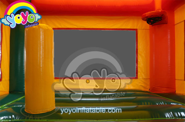 Look at this inflatable bounce castle. There is a pillar and a basketball hoop inside it. This is very American. And it is a very classic inflatable bounce castle. As a manufacturer, factory and supplier of inflatables, Yoyo inflatable is not only able to make classic styles, but we also continue to design new styles of inflatables.