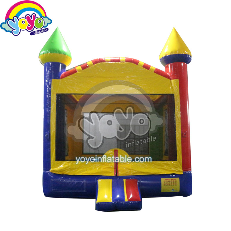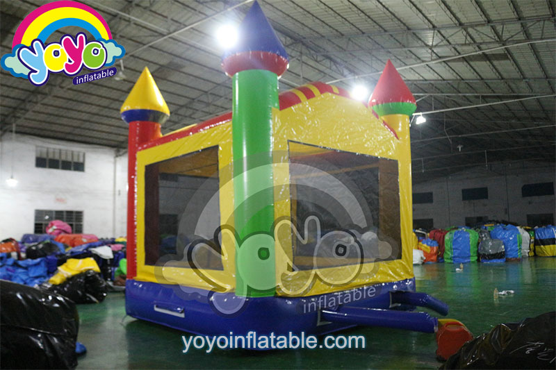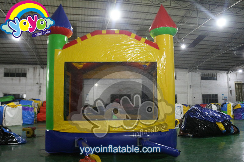 If you are looking for a bright, attractive and good quality inflatable bouncy castle with a liited budget, this 13 feet jumping castle may be the one for you. It’s regular bouncy castle design, no extra obstacle pillars, basketball hoops, slide or decorations to cut down the costs. Ans uses bright red, yellow, blue and green four colors to make it eye-catching and attractive for children. The entire structure is made of commercial grade 150z and 0.45mm PVC material, durable enough but at a relatively low cost. Very suitable for those who just start thier party rental business without a lot of budget.