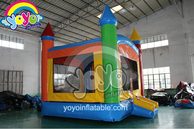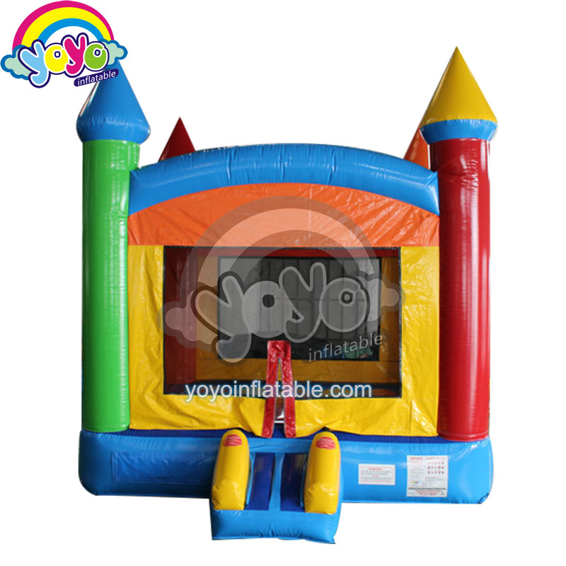 If our 15ft blank bounce house is a little plain for you, then you may want to take a look at this 14ft blank bouncy castle. Although it don’t has a speciaif theme, but the entire shape is designed as a real castle, with four spires on the roof. The selection of surface fabric is base on the rule of pick every color, so as you can see, it has every color! Super attractive and universal with the replaceable banner. No obstacle pillars or basketball hoop inside to reduce the cost, can be added if you request. Any idea please contact Yoyo today to customize the details and your business logo.