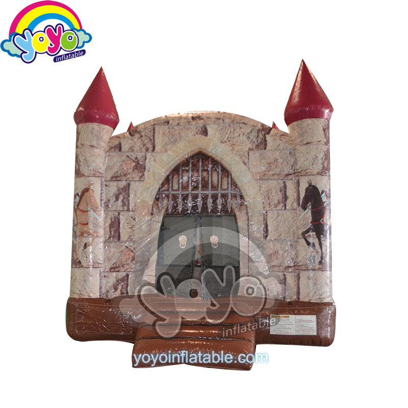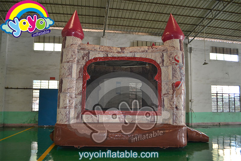 You mst have seen many princess castle themes of bounce houses, this 14 feet castle bounce house is designed knight theme. It noy only has a great castle style from the structure, but also has full knight themed digital printing on the surface. From the front side, you can see two giant knights printed on the columns, the middle is the door of a castle. Inside this castle, there is a large area of bouncing and a fun basketball hoop. This inflatable unit can help the kids to imagine they are a great knight that protecting their kingdom.