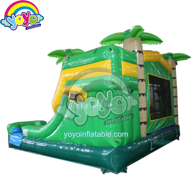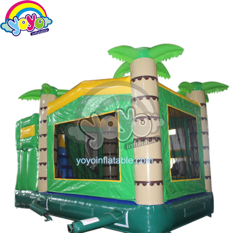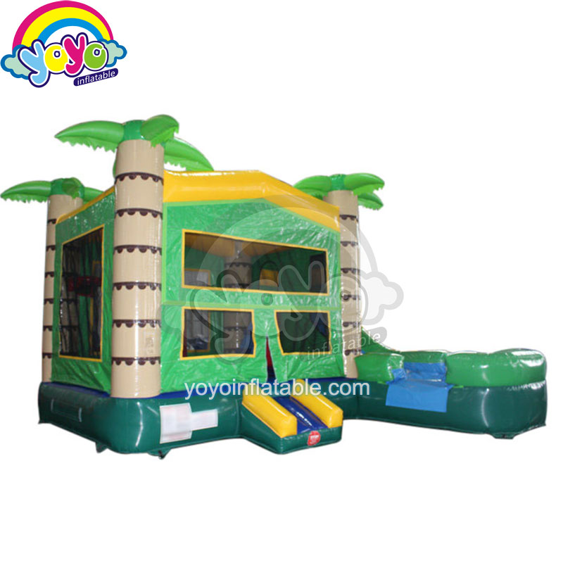 It’s really good, this 19′ inflatable palm tree wet/ dry bounce house combo with water slide and small pool! The kids will jump on the bounce house and slide into the small pool. There are basketball hoops inside and outside it. This is the first choice for business events and a great partner in the backyard of the house. Kids will enjoy the good time of summer vacation, and parents can take it easy. You can connect the inflatable palm tree wet/ dry bounce house combo with water pipes. The combination of tropical palm trees and water will be a big joy in summer!