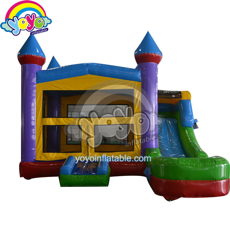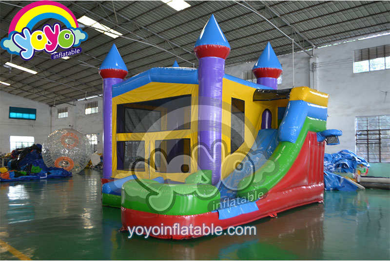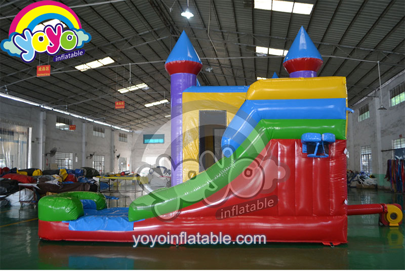 This popular inflatable castle wet/dry combo bounce house is a modular design. A modular design means this inflatable structure uses standard shape and design. You may want to ask which theme of inflatable games is the most favorite for party rental business owners. I can tell you that not princess, not pirate, not ant specific theme. It’s the modular design, aka universal themes. Yes, that’s right. This modular inflatable castle combo is universal, you can make it any themes for different parties and events. The design and size of this structure are most commonly used. A regular bouncy castle with replaceable business banner, a standard water slide with an outside basketball hoop. That’s all you need at the most cost-effective costs.