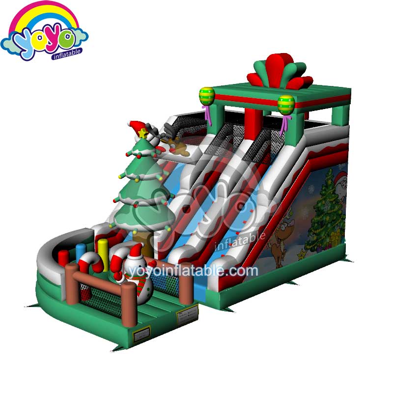 This 20ft Christmas party dry slide has a novel design and excellent workmanship. On this inflatable product, you can find Christmas trees, Santa Claus and Rudolph. Two climbing ladders can reach the top of the inflatable dry slide at the same time. Kids love to slide down the slide on the top floor. There was a small obstacle and a snowman waiting for the exit. Kids’ Christmas is what they expect most. And letting kids spend a happy Christmas holiday is a top priority for many parents. This 20ft Christmas party dry slide is suitable for parties and home backyard use.