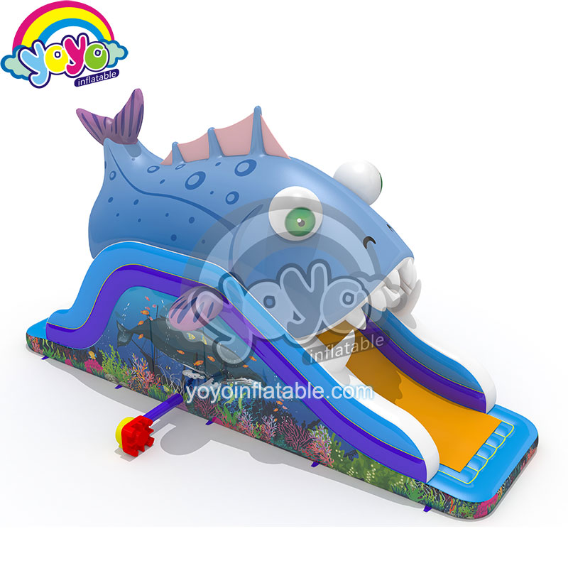 This incredible head fish dry side is a new design. The most eye-catching highlight is this giant and lifelike ocean fish cartoon on the top as you can see. It’s front-to-back structure, the players climb into the slide from the tail of this fish and then slide out from its big mouth. On the wall surface, there are full of colorful and beautiful underwater theme digital printing. All the details show how serious we are in production. If you want to plan a great birthday party with the popular theme of underwater world, then this giant head fish dry slide is a good selection to entertain both kids and adults.