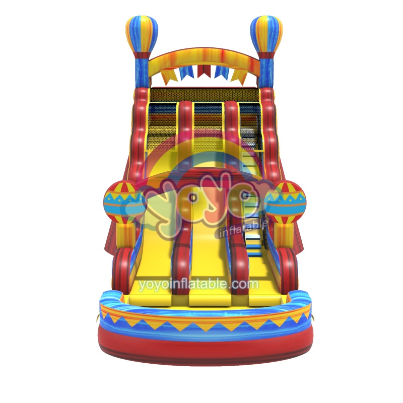 Elevate your next celebration with our stunning 24ft celebration marble commercial inflatable water slide! Designed for maximum fun, this double-lane water slide features a robust climbing ladder with supportive handrails, grips, and sturdy steps on the rightmost side. Measuring an impressive 24ft in height, 40ft in length and 20ft in width, it promises thrilling slides down the central and left lanes. Crafted from marble-colored material, it blends safety with style. Adorned with safety nets atop and celebratory balloon arches at both ends, it’s a visual delight. Plus, a small pool at the bottom catches all the excitement!
