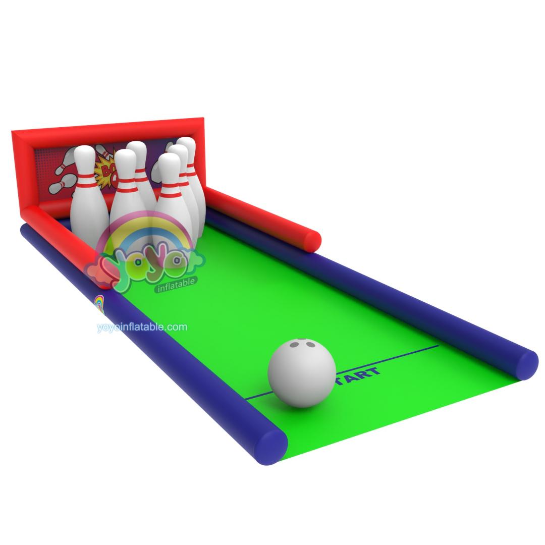 Experience true-to-life training with our 24ft commercial airtight inflatable bowling sport games. The extra-wide 3m+ lane features a light-green turf base with a bold “START” line, while deep-blue side tubes and red upper tubes support a nearly 2m-high backstop. The backstop showcases a vibrant bowling-themed print, creating an immersive arena for practice or competition.