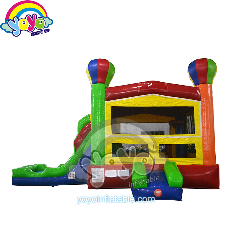 Our inflatable wet/ dry combo is specially designed according to kids’ hobbies. It contains various designs such as slide, climbing ladder, bounce area and basketball hoop. This 24ft inflatable rainbow wet/ dry combo YWCO-15036 has bright and clear rainbow colors, which deeply attracts kids. In addition, the wet combo design of the slide connected to the inflatable pool will make kids love it! The inflatable pool has been waterproofed. This commercial grade inflatable wet/ dry inflatable combo is very popular! You can often see them in amusement parks, squares, schools and other events.