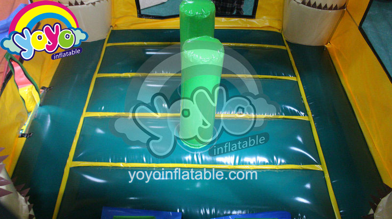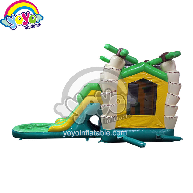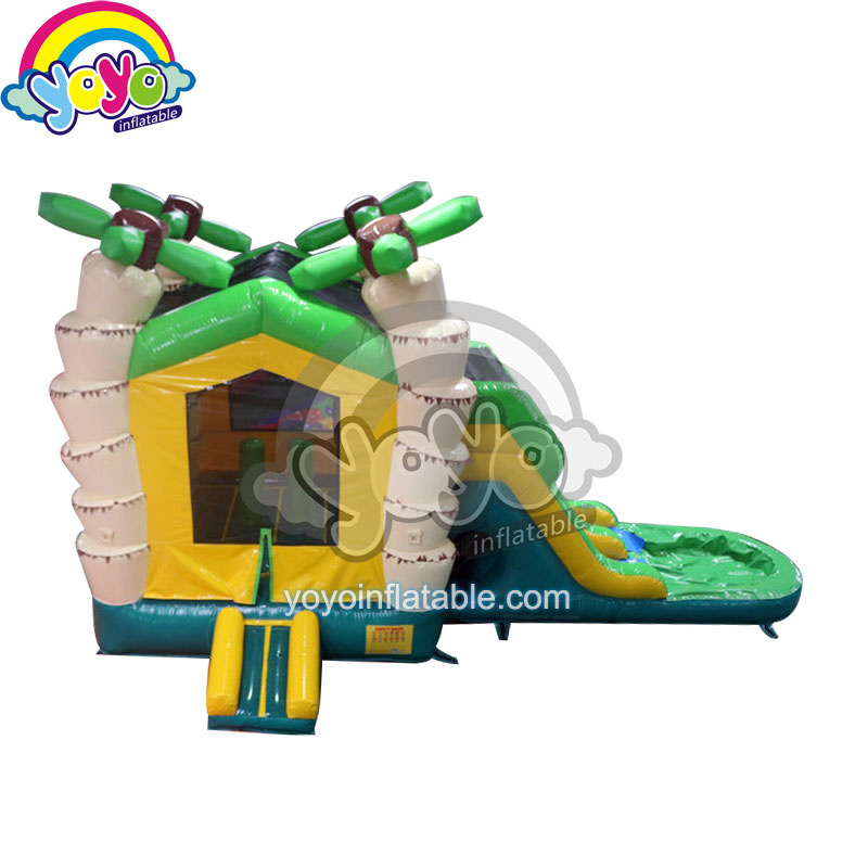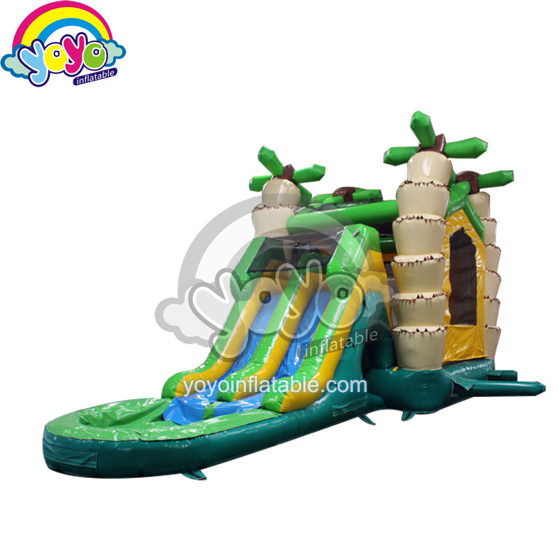 What a funny 28ft inflatable jungle water combo! The Shape of pillars is like a tree. Inside it there is the jumping area with two pillars and one basketball hoop. Double and triple stitches all over.