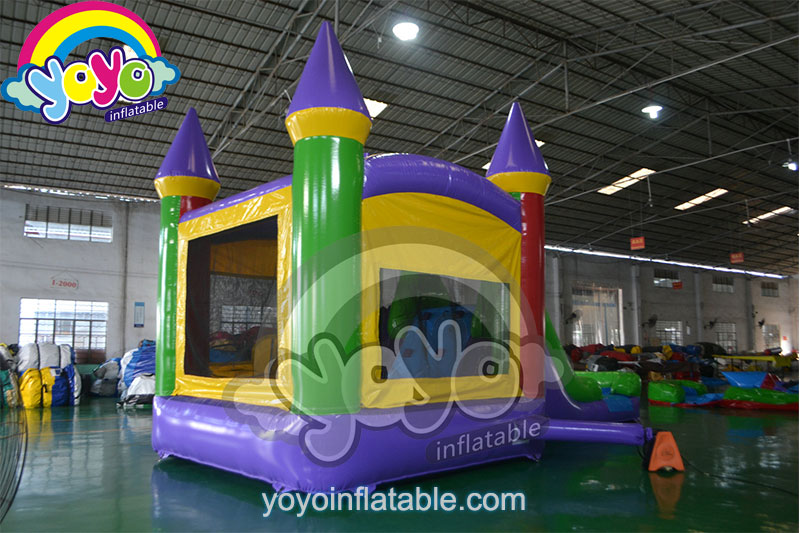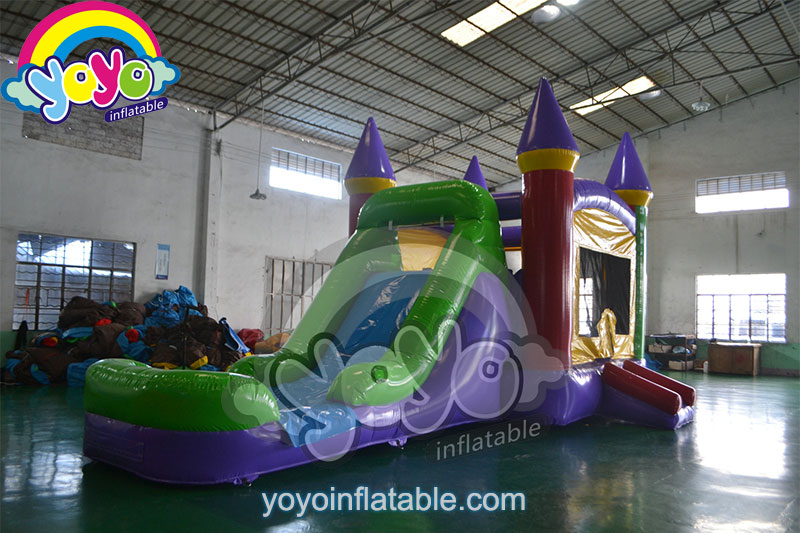 This classic rainbow castle design inflatable wet/dry combo is a very popular design for birthday party rental business and indoor amusement parks. The structure is simple, a big inflatable bouncy castle with one inflatable water slide. The jumping castle uses bright rainbow colors like blue, red, yellow and green. Inside this castle, kids can freely jumping up and down, then climb up to the platform to enjoy this water slide and splash pool at the bottom. This is a very popular item during hot summer season. Business banner is replaceable so it’s suitable for many themes of birthday parties. Not too big or too small size makes it affordable and acceptable for most families.