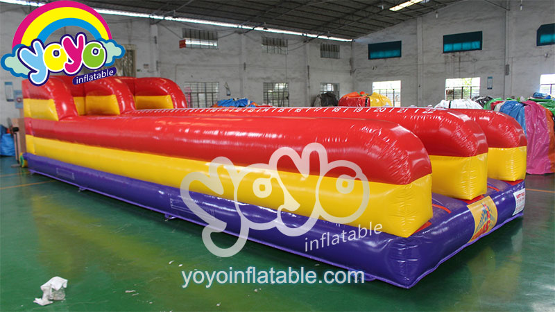 Bungee run is a very fun and exciting inflatable game for both kids and adults. Players can try their best to run away from the start line and then be snapped back by the powerful bungee cord. On the side walls, there are velcro marks for players to record their best result in this game, very challenging and competitive. This inflatable structure is a double lanes design, allow two players to compete with each other at the same time. The main colors are red, yellow and blue, with a total length of 35 feet, players can enjoy the ultra fun of bungee run at the parties, carnivals and corporate events.