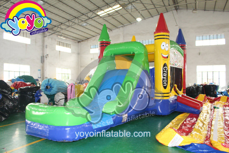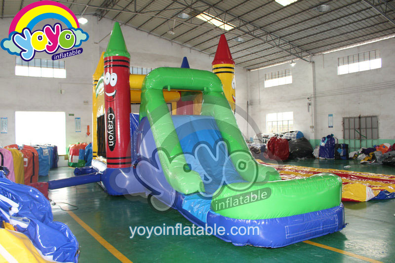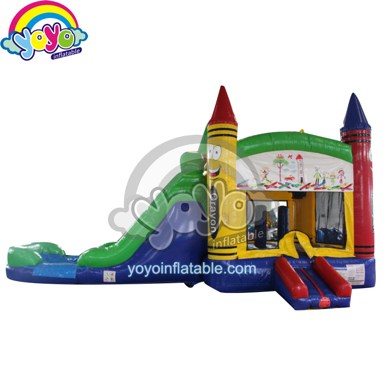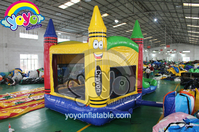 Like I said that kids love to paint with colorful crayons. What if they can actually play inside a giant inflatable castle that made of crayons? This crayon theme inflatable bouncer wet/dry combo water slide unit is such an exciting design for children. It’s a complete 5-in-1 combo, includes a large bouncing room, obstacle pillars and basketball hoop, climbing stair and water slide. The four inflatable columns are designed into fun and cute cartoon crayon man. And the front banner is a colorful picture that looks like painted by crayons. What a great inflatable toy for small kids’ birthday parties. The inflatable water slide allows kids to stay cool even in the hot summer afternoon.