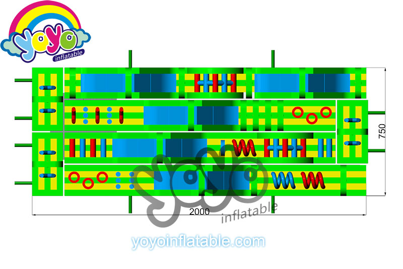 This super big and complex inflatable obstacle course is an incredible design for kids. Although it has four lanes in wifth, but it’s actually a single lane obstacle course. Players have to turn 3 time inside this long obstacle course to finish the challenge. When kids get into the start line, they will encounter various challenges on the way before they get out. So many fun obstacle games like inflatable corrugated fries, climbing walls and slides, tunnels, etc. If you want to attractive a lot of children by holding a large sport games event, this is your ideal entertainment inflatable structure. It’s also a great iten for large indoor amusement parks. Come to yoyo to customise your own obstacle course with our experienced designers.