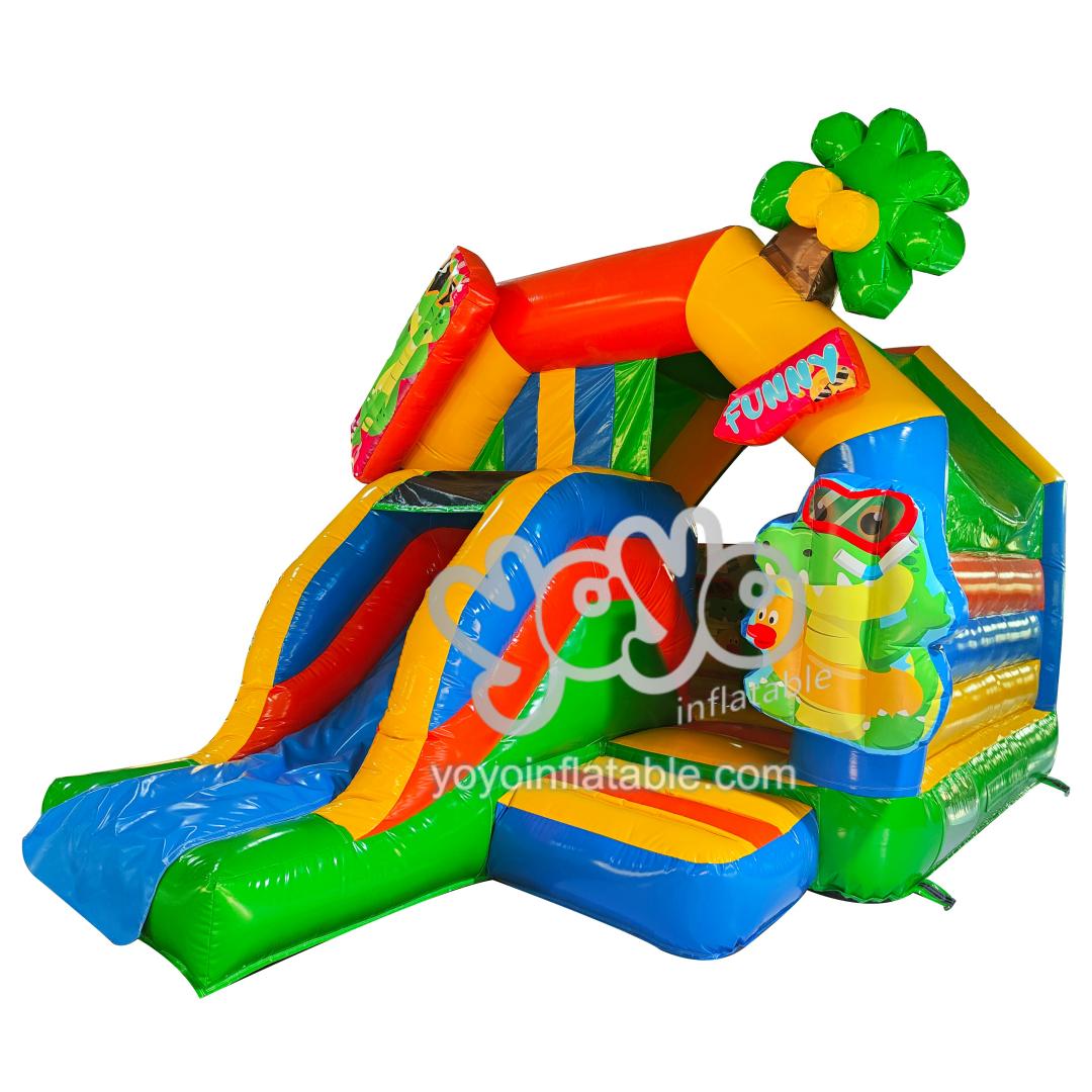 The cute alligator patterns and vibrant colors on this inflatable combo create a visual feast that children adore. A slide integrated seamlessly into the side ensures endless laughter and safe entertainment. The “Funny” word at the gate welcome players to the crocodile family.