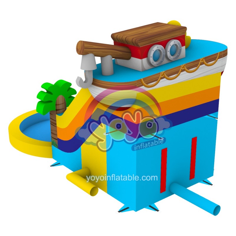 Meet the captain duck commercial small inflatable water slide (YY-WSL250441), where endless fun begins! This vibrant, eye-catching slide features a unique original design with a cheerful duck captain atop a fishing boat at the top, flanked by lighthouses and palm trees at the base. Its brilliant yellow, blue and orange color scheme instantly captures children’s imagination. Best of all, the entire unit—both the slide and pool—inflates seamlessly as one, saving you time and effort. Durable, compact and designed for easy setup, it delivers maximum splash fun in minimal space.