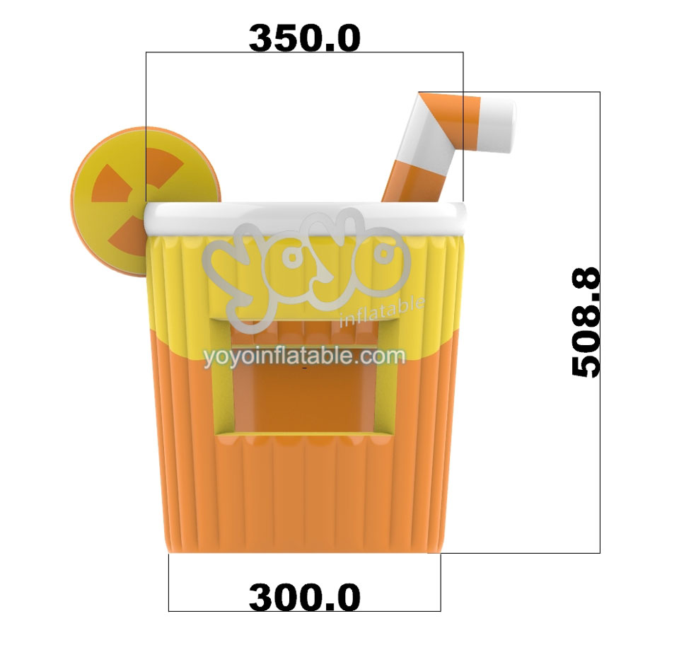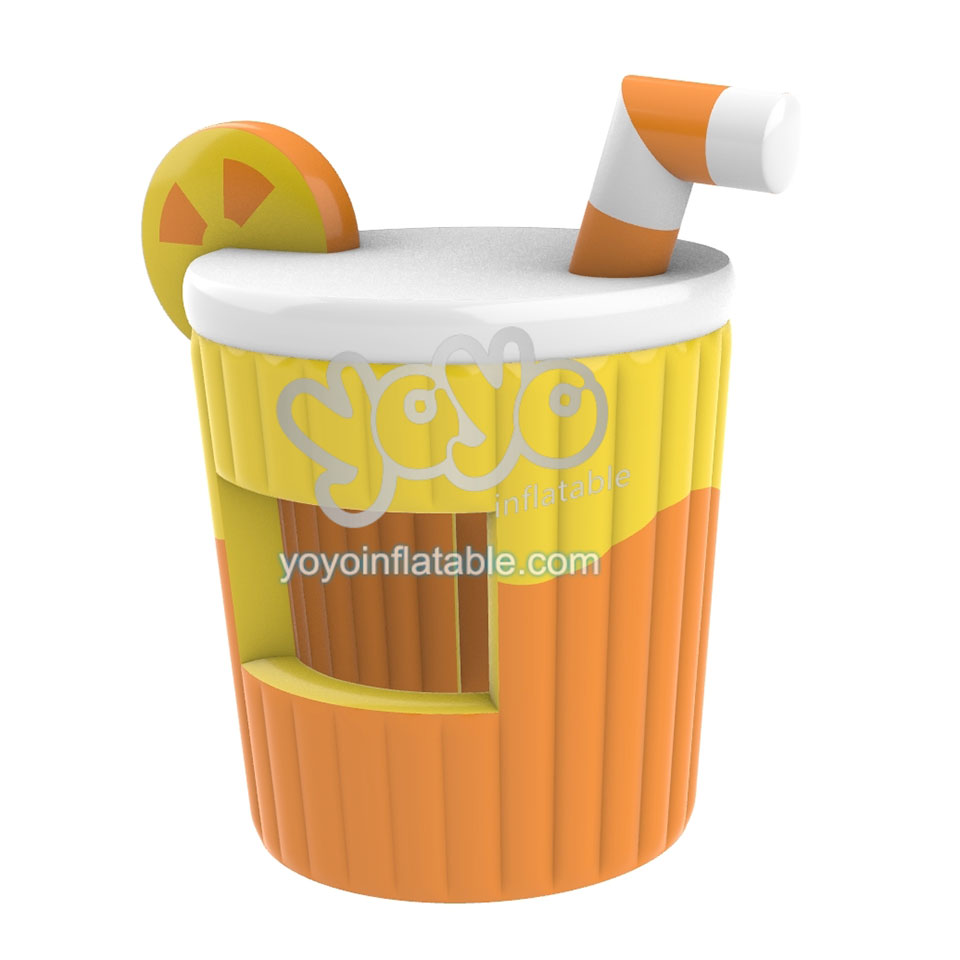 This giant inflatable advertising is designed with a yellow and orange colors lemon tea shape. It’s not only a 5 meters tall inflatable advertising, but also a moveable inflatable stall for your small business. This colorful, air-structure, convenient and lightweight inflatable shop is suitable for you to open a drink and snack stall at the carnivals, car park theater, inflatable playgrounds and other outdoor activities.
