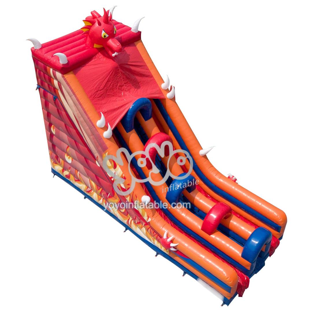 Towering 9 meters tall, this fire dragon-themed commercial dry inflatable slide fuels epic adventures! A central climbing path anchors the design, dotted with tiny archway decorations that infuse mythical charm as players make their steady ascent.