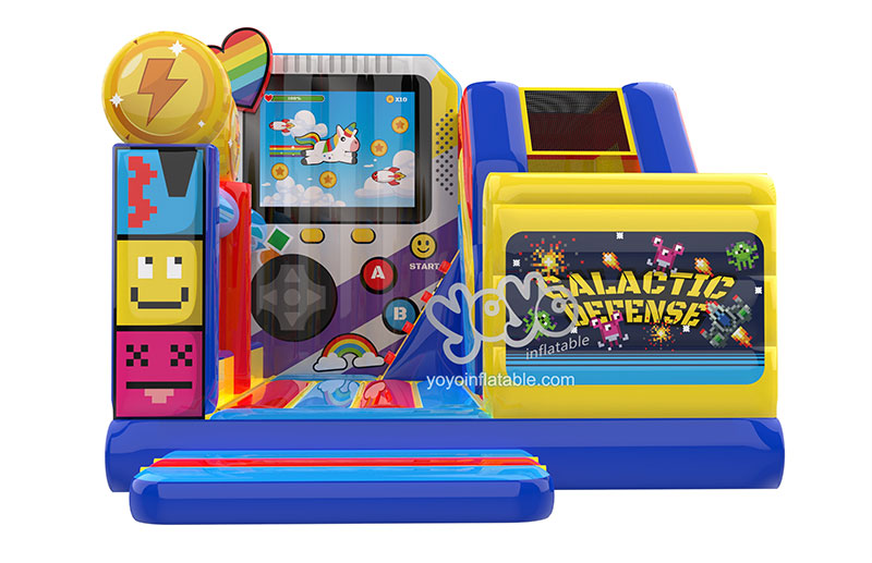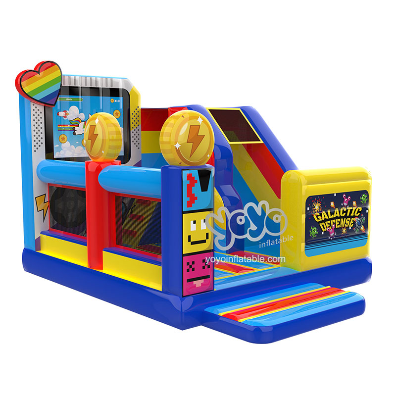 Vibrant hues of blue, red and yellow ignite your imagination. Towering TV screen display, immersing you in a galactic defense game right at your backyard. Slide down the exhilarating ramp and prepare to defend the universe!