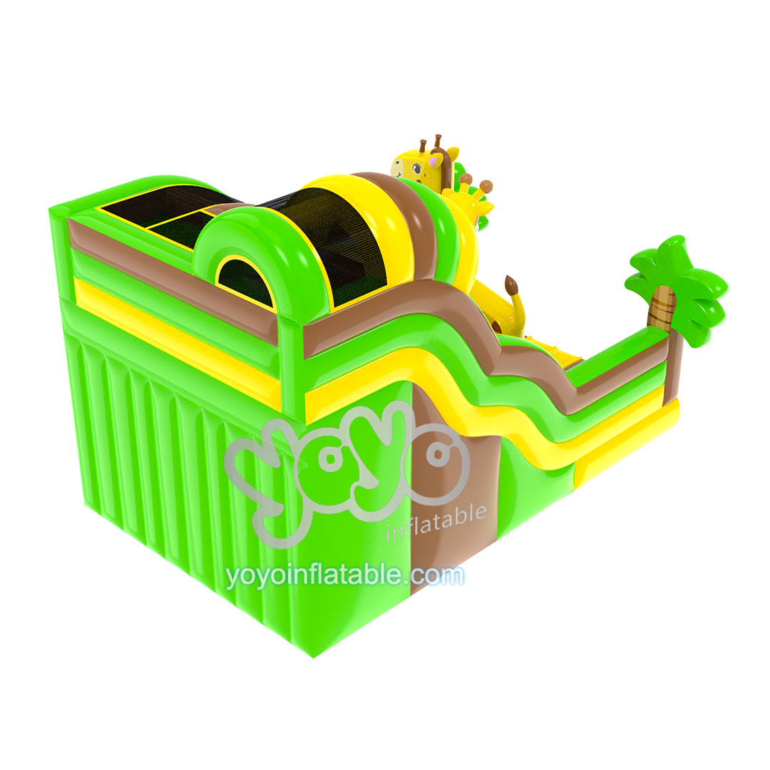 Children love to go to the zoo because they want to interact with the animals. This cute and colorful giraffe theme inflatable slide gives children an opportunity to safely interact and play with animals. You can think of it as an inflatable zoo. There are tall inflatable giraffe and palm trees inside. When children climb to the top platform, they can see what’s below from a giraffe’s perspective. And they cal also find out what it’s like to slide down from the height of a giraffe. How exciting is that!