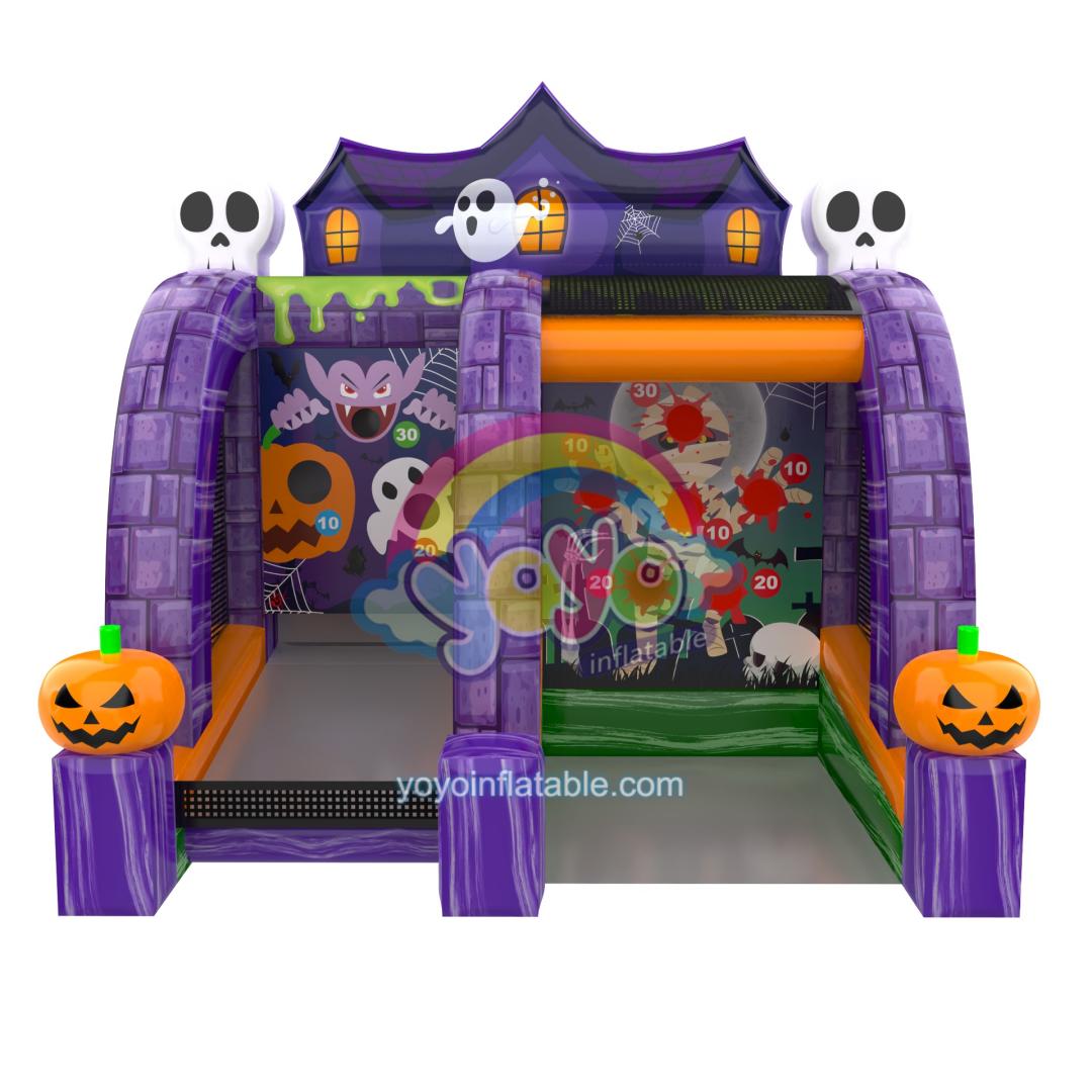Same size and design as YY-SP251245-A, this 2-in-1 inflatable sport game challenges players with dual throwing and kicking targets, each clearly scored for competitive fun. It features the same popular haunted castle theme, complete with eerie graphics of jack-o’-lanterns, mummies, and skeletons that captivate children. Its distinction lies in the specialized marble material, which adds a dynamic, textured depth to the vibrant holiday design.
