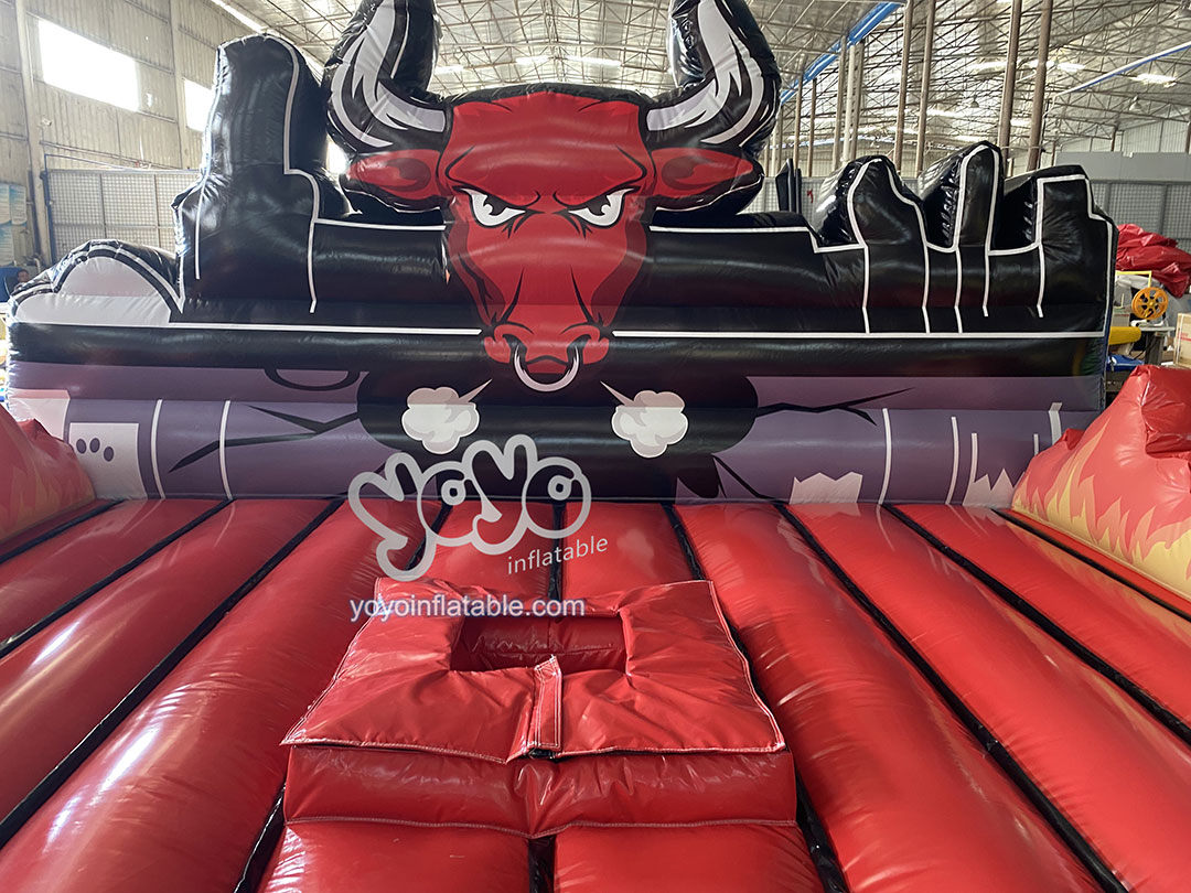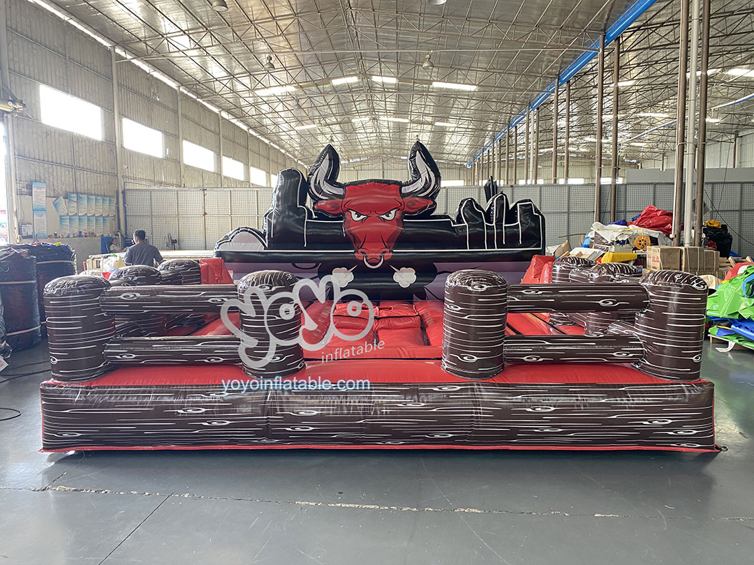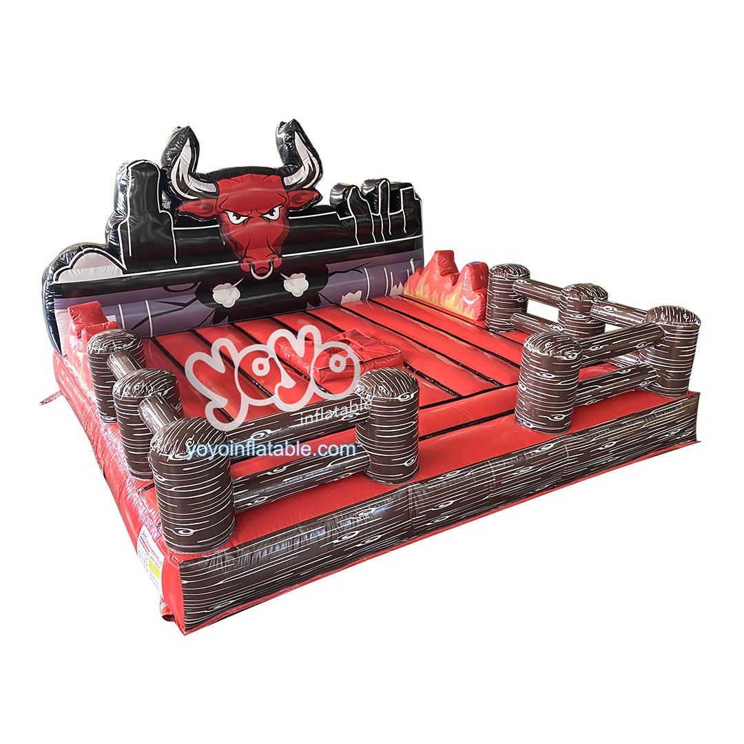 This product is an inflatable bullring without the machanical bull for the business owner to replace damaged or old inflatable mattresses. The fabric material used for this inflatable bull fight ring is thickened, giving players greater safety. The back side is a customized cartoon bull wall, and the other three sides are inflatable fences, just like a real bullring. If you happen to need an electric bullfighting machine, we can also provide you with a variety of styles at a preferential price.