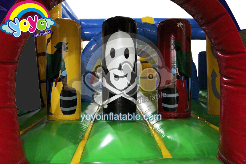 The ferocious captain guarded the entrance to the inflatable pirate ship amusement. Waiting for the kids are thrilling obstacles, climbing ladders and slides. When you are brave enough, you can snatch the steering wheel as the captain!