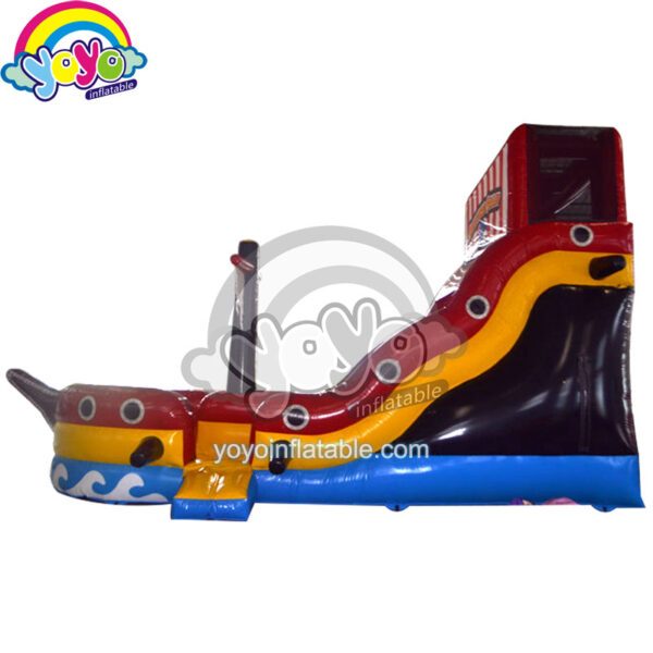 This Inflatable Pirate Ship Water Slide is very suitable for party rental. Its size is not big, but it is suitable for many people to play together. There is a hole at the bottom of the slide pool. When water enters, the water can come out of the hole at the bottom. There is also a zipper in front of the inflatable water slide, which can quickly discharge air and water. Convenience!