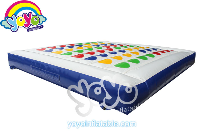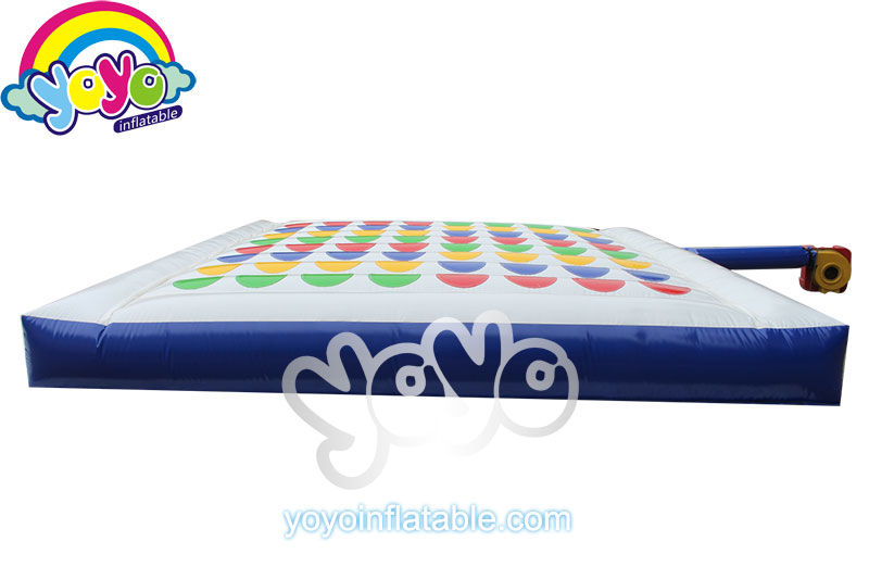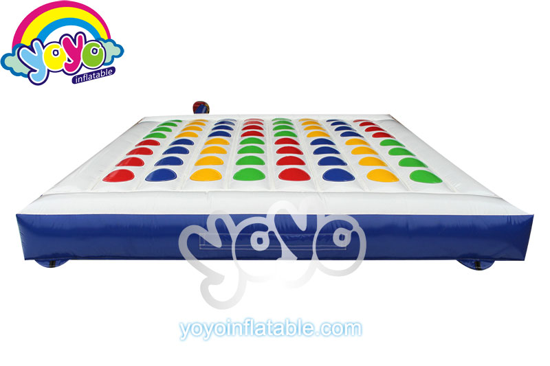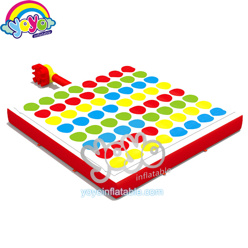This simple inflatable game is a giant human size soft and bounce twist game for both kids and adults. Many people must have played the twist game with friends on a regular sheet. However, this is a removable and soft inflatable twister sheet. The base structure is a regular inflatable mattress. The top surface is covered with a colorful dot printing sheet. It’s used for the popular twist game. Players need to put their hands and feet on the spots of different colors which is decided by a turntable. It’s so hot and popular for birthday parties and social times of friends. Also a good game for parents to spend time with their kids.