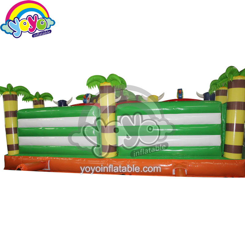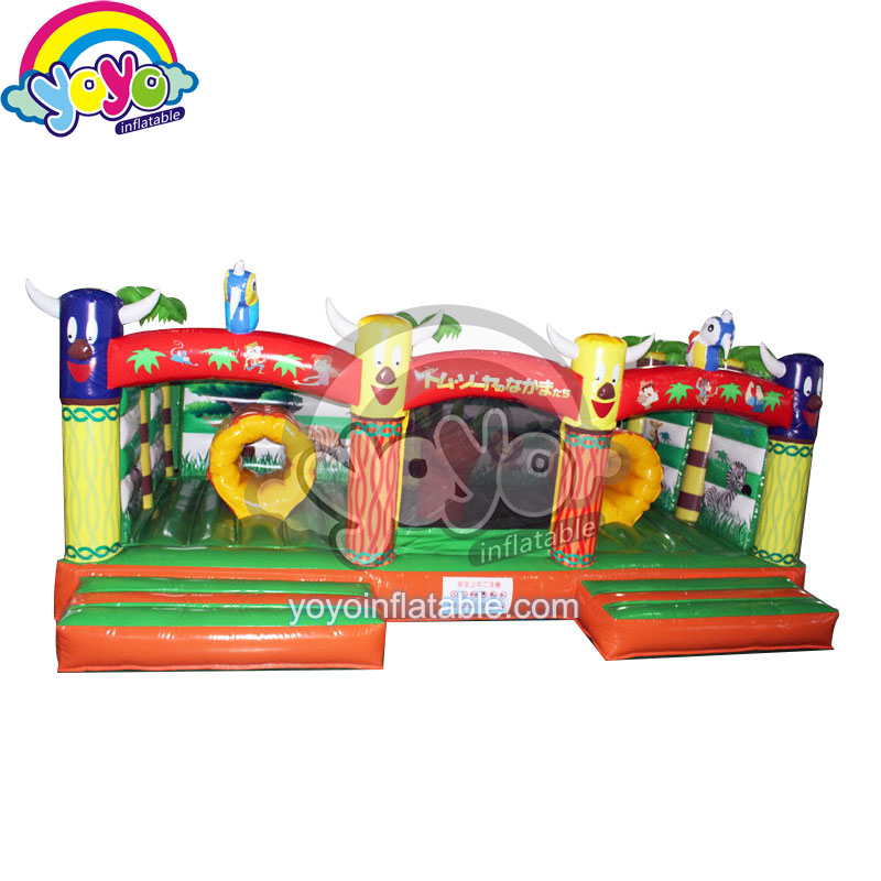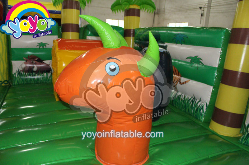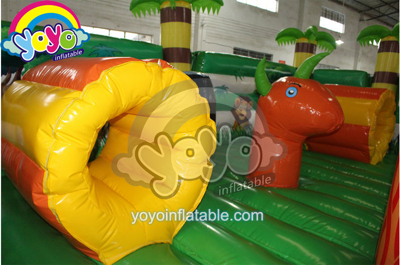 Jungle Inflatable Amusement Park. Inside the jungle park have two tunnel. The wall is full of the animal printing, like giraffe, antelope, lion, zebra, etc. As like you are In the zoo.