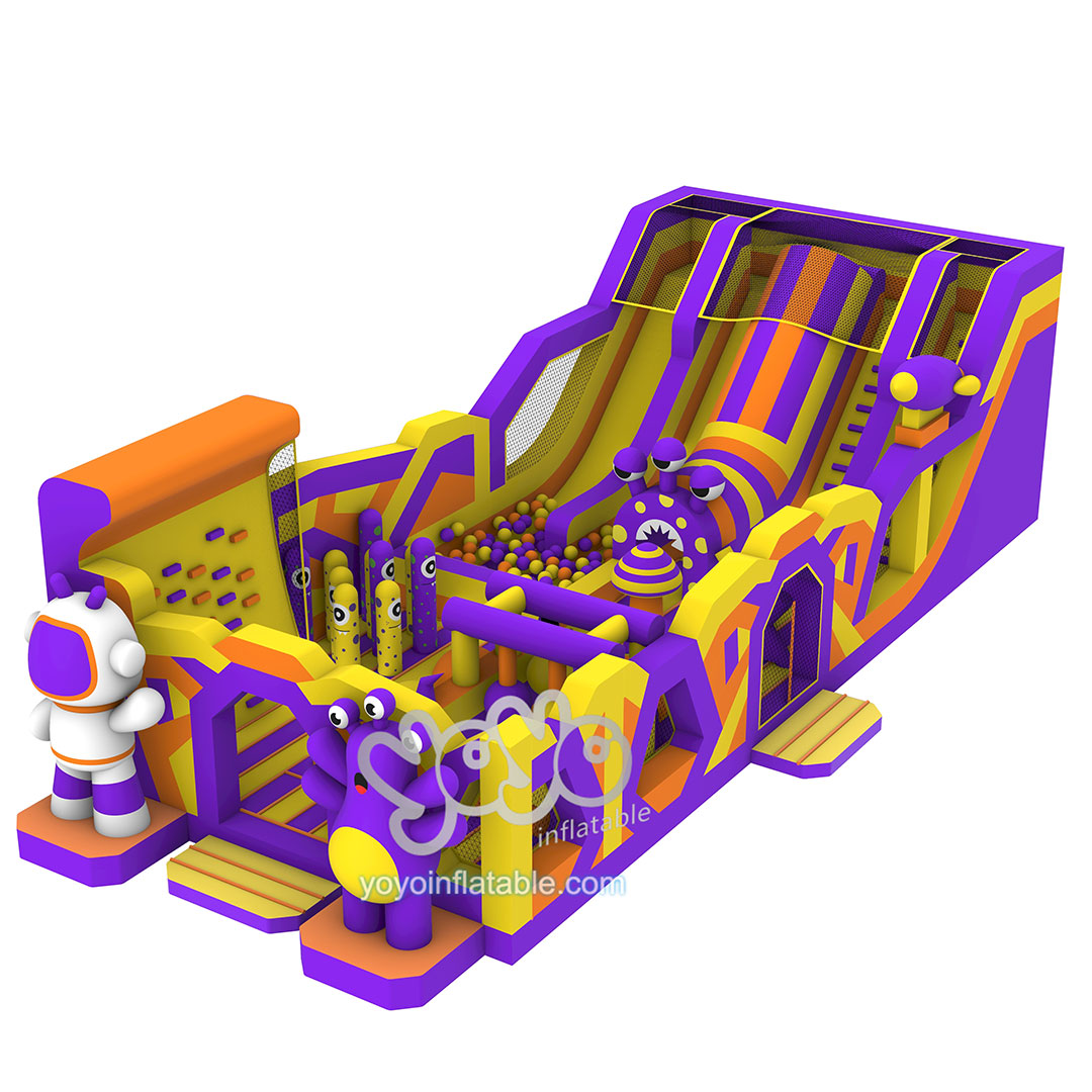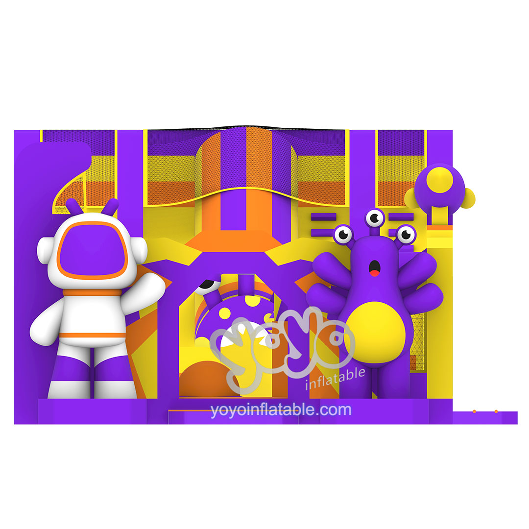 The cartoon design of the entrance is eye-catching but not bloated. The entire theme park has slide areas, obstacle areas and rock climbing areas. The fun of each area is well designed. The slide section is connected with the ball pool section. And the design of the monster channel is very individual. The details can best embellish the characteristics of the whole park. The one-eyed and mouth on the pillar, as well as the rocket on the wall, fully reflect the theme of this product. Thanks to the designer for the ingenious layout!