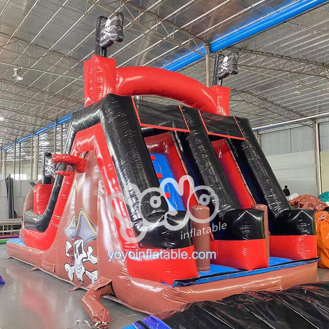 If you’re not sure which inflatables to buy as a new addition to your party rental business, then buy a pirate ship. Pirate ship is always one of the most popular themes for inflatable slides and bouncy castles for children. This inflatable pirate ship slide is designed with two straight lanes for climbing and sliding. Two black pirate flags on the top of this ship, multiple cannons and cool pirate avatar makes it more attractive, and there are also basketball hoops on the outside walls for extra sport fun.