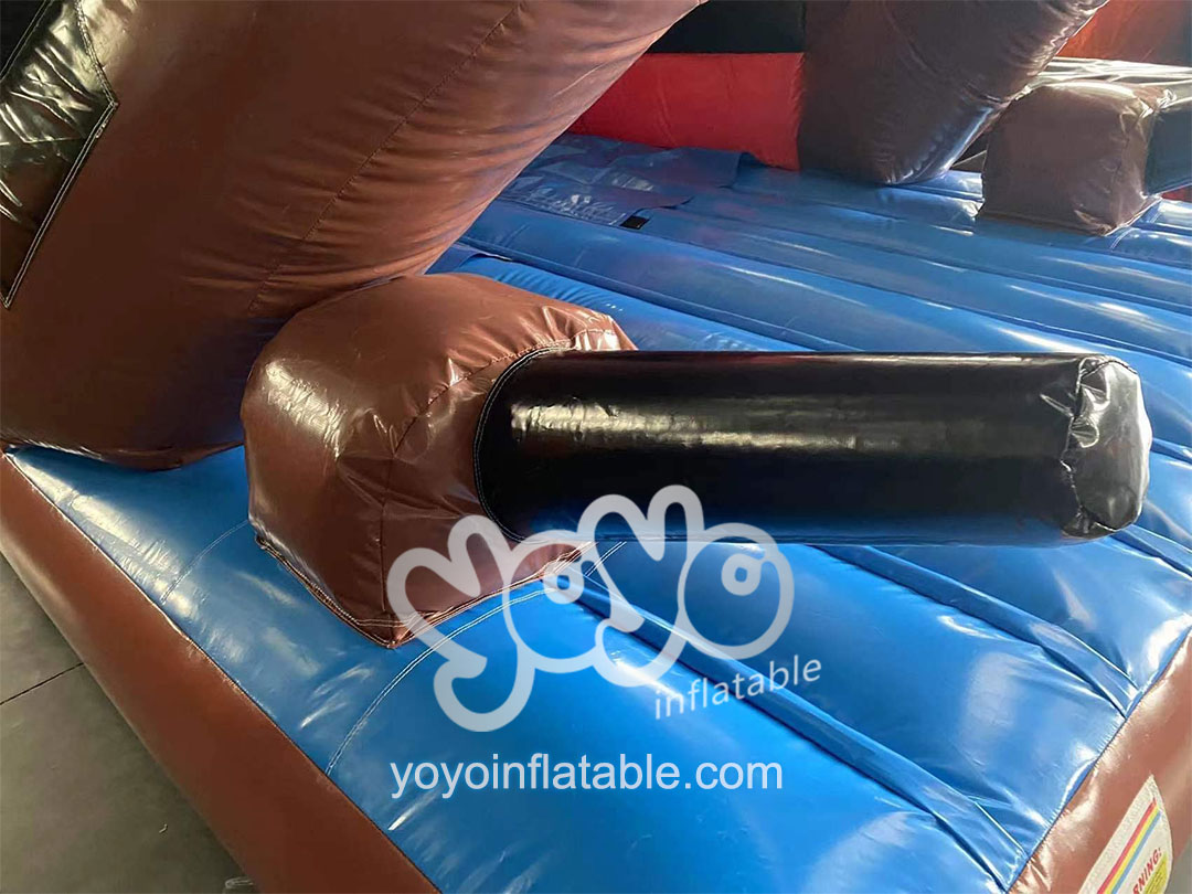 The fabric thickness of our inflatable slides and bounce houses is 0.45mm. The upper piece and slope of this slide is made of 0.55mm fabric, the bottom thickness is 0.52mm, the height of the air cushion is 60cm, the height of the guardrail is 80cm, the width of the guardrail is 27-30cm, the slide and shape design all have rounded corners. The upper and lower reinforced structures are used in places that are prone to breakage. The material is a national unified PVC mesh cloth. The test results of the Quality Supervision Bureau show that this material is one of the designated materials for amusement equipment that is non-toxic, tasteless and completely green and environmentally friendly.