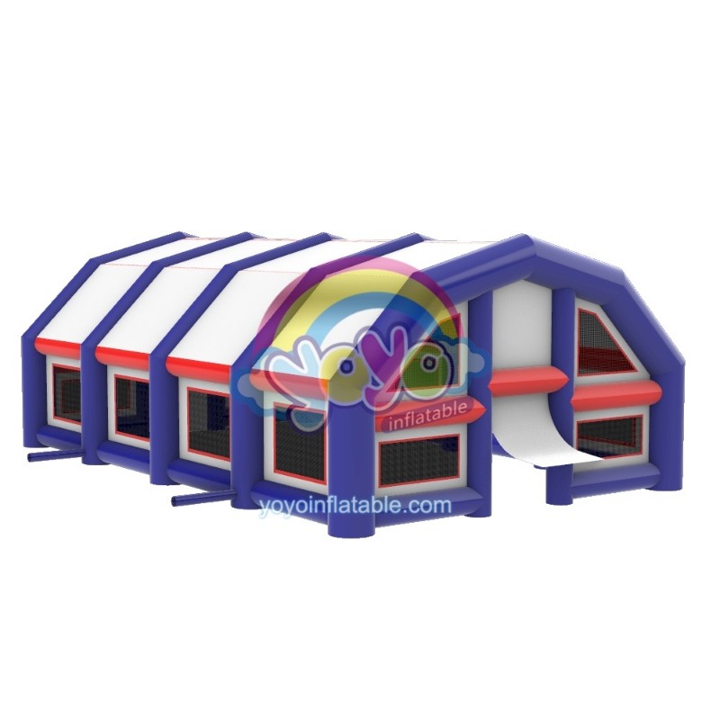 Introducing the red blue white commercial big inflatable tent, a premier solution for dynamic outdoor sports. This big tent 16m(L) x 10m(W) x 6m(H) structure is engineered with four full mesh walls, creating a secure, high-visibility environment for activities like tennis and basketball. The durable PVC roof provides reliable overhead protection from rain and sun, ensuring play continues in any weather. Its vibrant red, blue and white color scheme ensures high visual impact, attracting attention while serving a vital functional role.