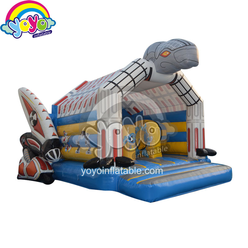 Kids love robot toys, this robot theme inflatable combo will be their favorite. It has a very cool appearance design, large inflatable robot jumping house with two super cool wings on both sides, looks like a giant fantastic aircraft, children can take this aircraft to explore the space or fight against with the evil. Satisfy the children’s fantasies and entertainment. The robot bounce moonwalk combo has three fun obstacles and a small slide, the most popular design for inflatable combo. This excellent design must be very exciting in the kids birthday parties.