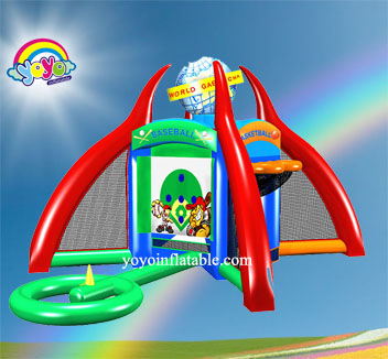 Space-themed pitching inflatable sport games features dual arenas, scoring holes and cosmic visuals. Durable, interactive and perfect for competitive play!