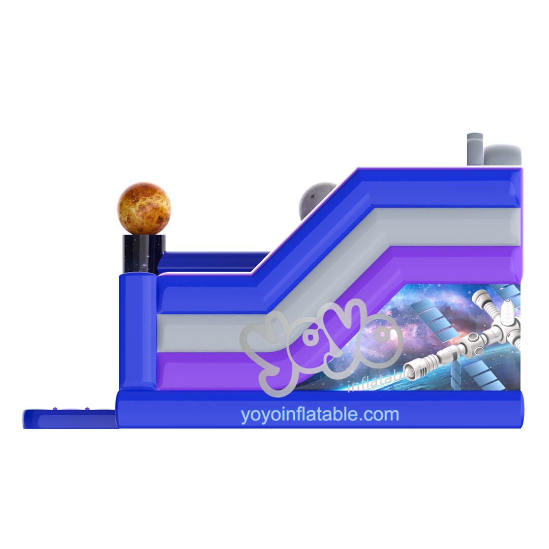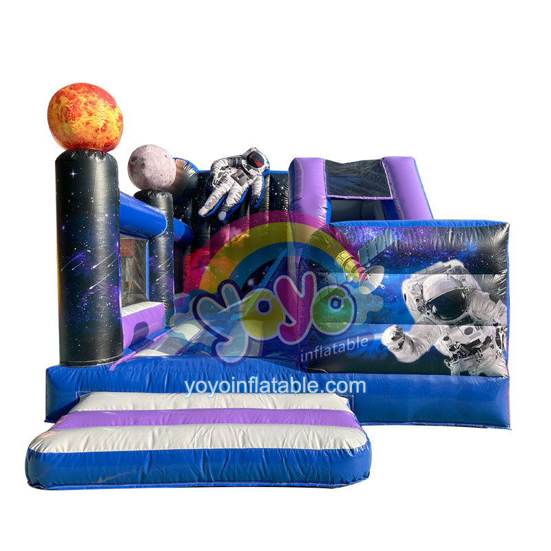 You konw, bounce house also named inflatable moonwalk, that‘s’ because when you walk on the bounce ground, you feel like you are walking on the moon. So we actually develop a spacewalk theme inflatable bounce house combo for you. The highlights of this design are the huge inflatable planets and the large inflatable astronaut looks like floating in space. We also have a similar theme of space monster bounce house combo for you.