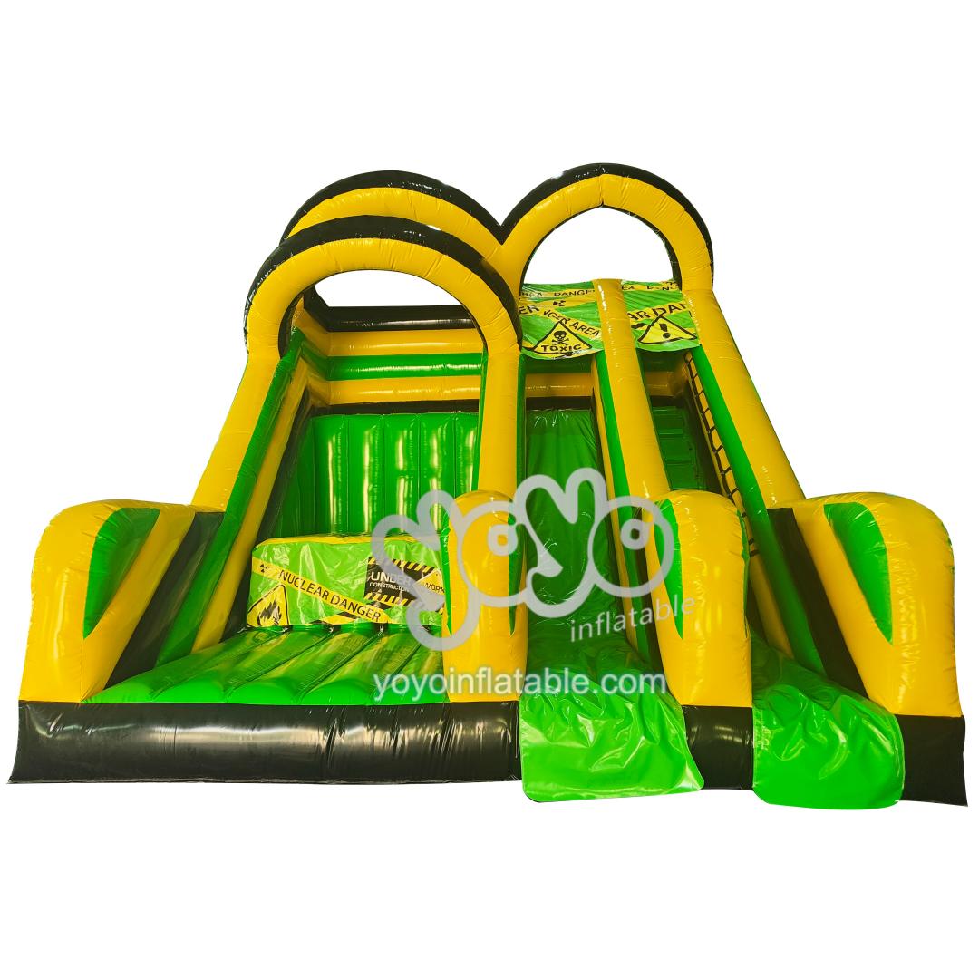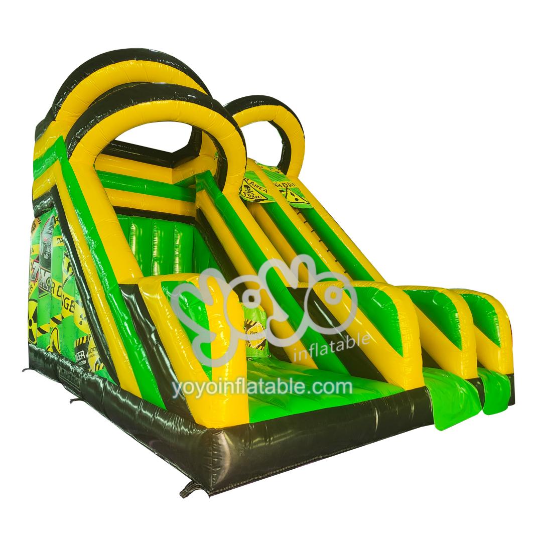 Enter a thrilling hazard zone! This boldly designed inflatable slide features striking yellow, green, and black “toxic warning” graphics for immersive adventurous play. Kids conquer the climb, then choose their exit: a fast slide down the smooth dry chute or an exciting leap from the platform onto the safe landing jump bag. Two exciting exits mean double the fun and endless replay value.