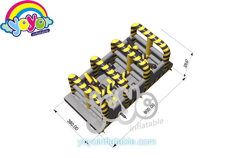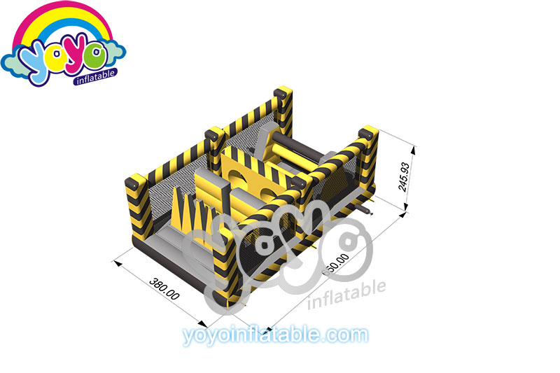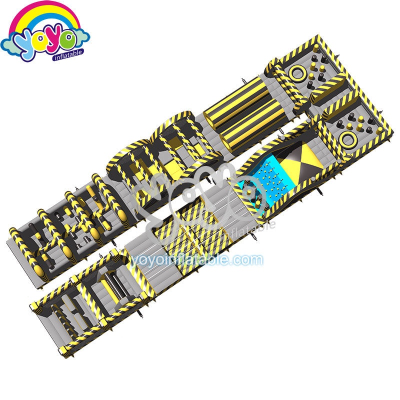 This super large U-shaped extreme inflatable obstacle course is designed with the popular toxic theme, the main colors are yellow, black and gray. Inside this huge inflatable obstacle course structure, there are a lot of fun obstacle games for kids, include cross-piece walls, climbing wall and jumping cliff, long tunnels and hurdle, etc. The entire obstacle course is not easy to complete. So it’s complexe and challenging enought for children to compete with their friends. This super extreme inflatable obstacle course is suitable for commercial plaza activities, outdoor school events, carnivals and fundraising.