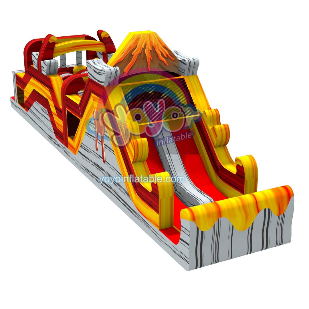 This volcano-themed obstacle course bounce house demands attention with its bold red-yellow-gray palette, volcano decor, vivid printing, and marble-textured material—blending visual wow with playful functionality! Its two-section design strikes the perfect balance, offering just the right amount of adventure without overwhelming.