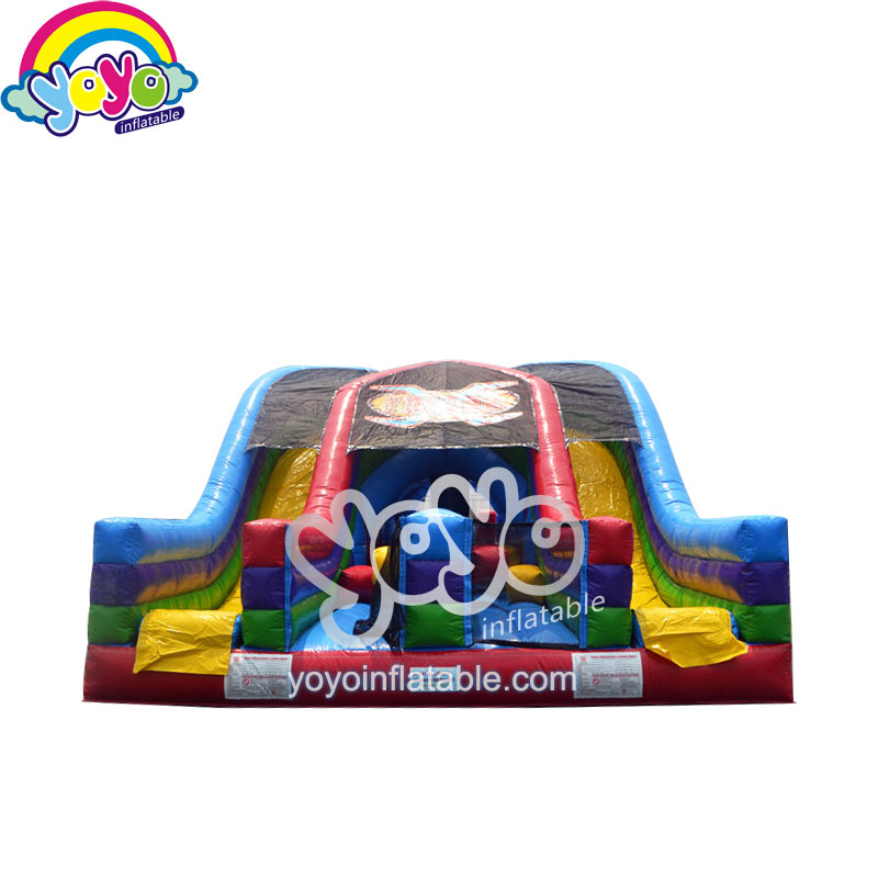 Kids love super cool thing. They want to experience some sports that may be dangerous in the eyes of an adult. Now you don’t need to worry anymore with this giant inflatable amusement park. It’s designed with a famous X shaped obstacle course. As you can see, it has two fun obstacle lanes cross each other, with two obstacle tunnels underneath. Children can get through the tunnel and climb up in the behind, and turn back to slide down to the start line. They can compete with each other for more fun.