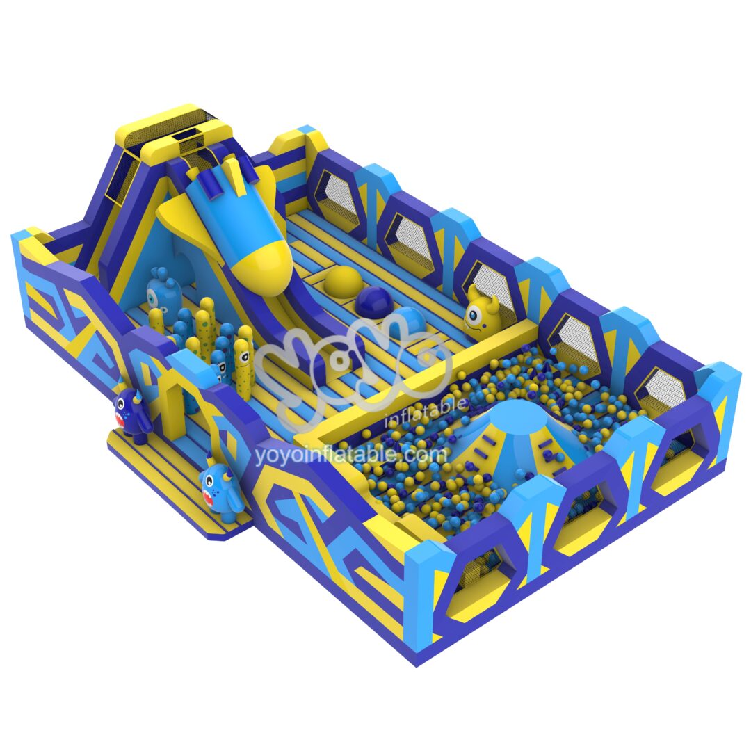 This Yellow and Blue Escape to Outer Space Theme has several interactive games, slides, obstacles. Its biggest highlight is a large ball pool. The spaceship slide is also quite attractive.
